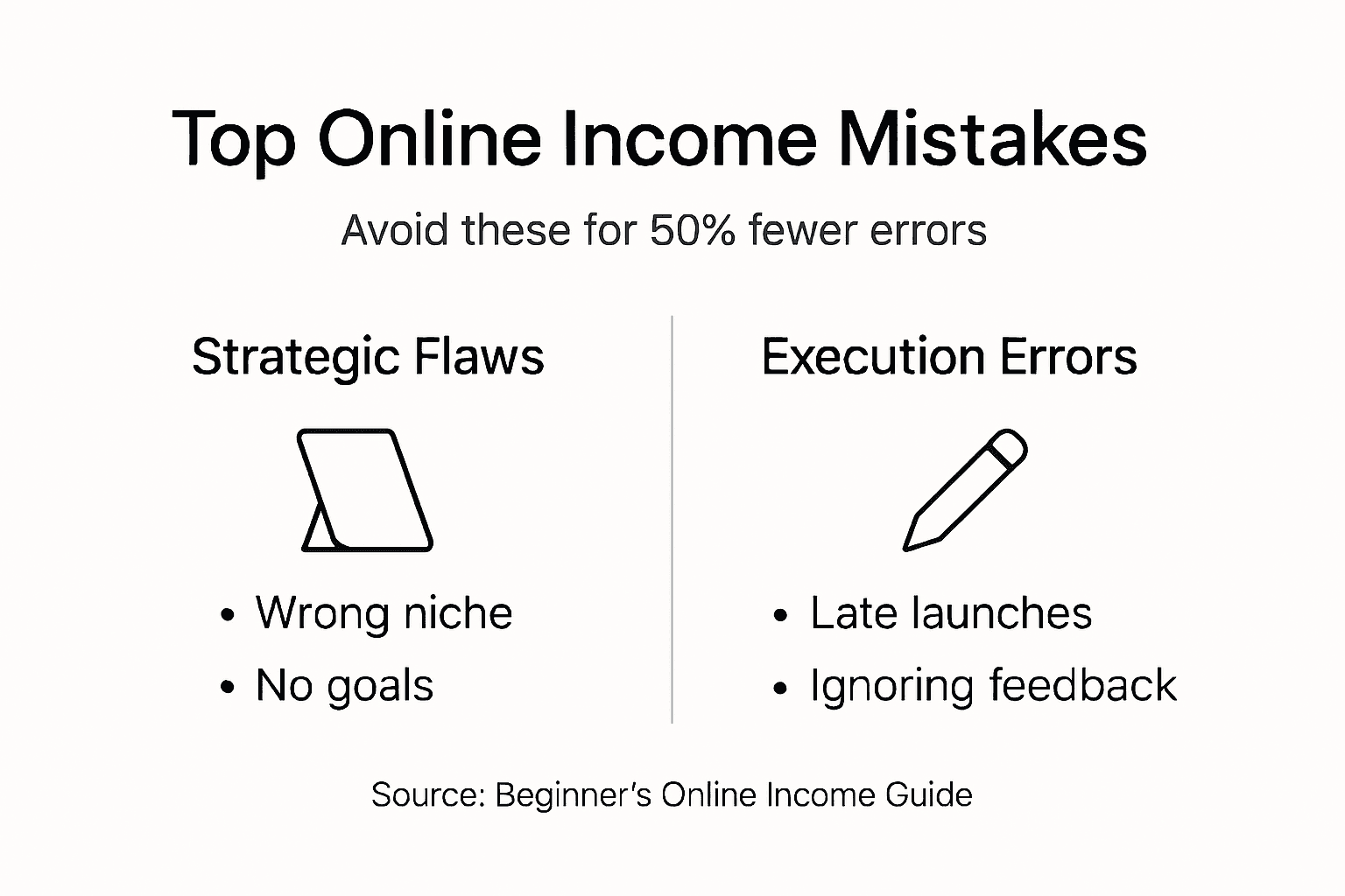 Beginners consistently stumble over predictable obstacles that research and planning easily prevent. The most damaging mistake involves expecting overnight success. Unrealistic expectations cause discouragement; consistent effort over 3 to 6 months correlates with 60%+ success rates. When income doesn't materialize within days, many quit precisely when persistence would yield results. Setting accurate timeline expectations based on your chosen method prevents this premature abandonment.